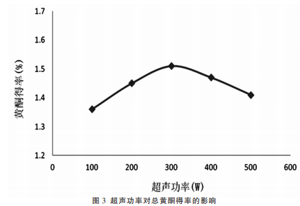 3.1.2 超聲功率對秦艽總黃酮得率的影響