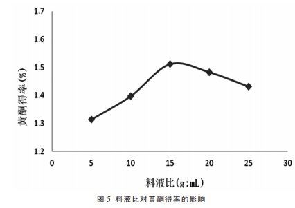 3.1.4 料液比對秦艽總黃酮得率的影響