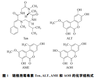 鏈格孢菌是在自然界中廣泛分布的一種常見植 物病原真菌和腐生真菌,它會破壞農作物,導致采后 腐爛。貯藏期間水果蔬菜的大量腐爛與鏈格孢菌在 低溫下生長良好有關,許多蔬菜水果很容易產生鏈 格孢菌。目前關于鏈格孢菌毒素檢測的標準,只 有SN/T4259-2015《出口水果蔬菜中鏈格孢菌毒素 的測定液相色譜-質譜/質譜法》標準,且鏈格孢菌 毒素的檢出 限 為10μg/kg。而關于鏈格孢菌毒素 的限量規定則未見報道。