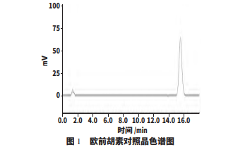 色譜柱:InertSustain C18(150mm×4.6mm,5μm); 流動相:乙腈-水(48∶52,體積比);流速:1.0mL·min-1 ; 檢測波長:254nm;柱溫:室溫;進樣量:20μL;光譜 掃描范圍 220~500nm。理論塔板數(shù)按歐前胡素標準 品計算不低于 7700。