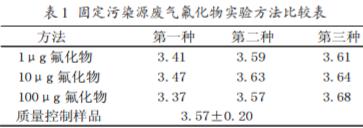目前,應(yīng)用比較廣泛的一種固定污染源廢氣氟化物測 定方法主要為環(huán)保部頒布的標(biāo)準(zhǔn)方法 HJ/T67-2001,本文 將這種方法設(shè)定為對比實驗的第一種操作方法,而第二種 主要就是定容體積 50mL,加入 10mL 的總離子強度調(diào)節(jié)緩 沖液;第三種為定容體積 50mL,加入 12.5mL 的總離子強 度調(diào)節(jié)緩沖液。明確相應(yīng)的操作數(shù)據(jù)之后,就可以開始進(jìn) 行實驗了。