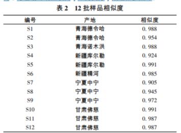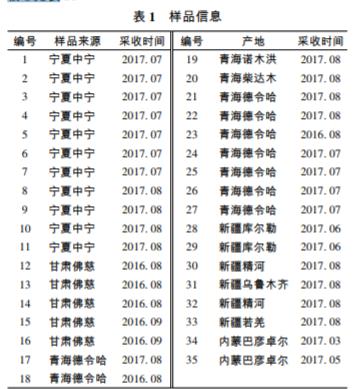 收集寧夏、甘肅、新疆、青海和內蒙古 5 個產 地共 35 批枸杞樣品,經北京中醫藥大學劉春生教授鑒定鑒 定為茄科植物寧夏枸杞 Lyciumbarbarum L. 的干燥成熟果實。 信息見表 1。