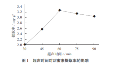 超聲時間對甜蜜素提取率的影響見圖 1。