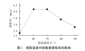提取溫度對甜蜜素提取率的影響見圖 2。