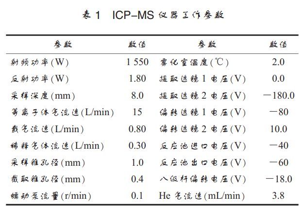 甲醇 (色譜純, Merck), 磷酸氫二銨、 磷酸二氫銨、 碳酸銨、 硝酸銨、 磷酸 (GR 級, 廣州化學試劑廠), 三氟乙酸 (TFA, 純 度≥95.0%, ACS), 硝酸 (68%~70%, GR 級, 廣州化學試劑廠), 實驗室用水為 Milli-Q 高純水。 砷 標 準 溶 液 : As ( V) (GBW08667) 、 As ( III) (GBW08666) 、 MMA ( GBW08668) 、 DMA (GBW08669) 以及 As 單標準儲備液 (1 000 mg/L) 均購于國家標準物質中心, ASA (99.99%) 購買 于阿拉丁試劑有限公司。 5 種 As 形態混合標準儲 備液: 用純水將 As (III)、 As (V)、 MMA、 DMA 4 種 As 形態稀釋成質量濃度均為 400 mg/L (以 As 計) 的標準儲備液, 用甲醇將 ASA 溶解成質量濃 度 為 400 mg/L (以 As 計) 的 標 準 儲 備 液, 置 于 4℃冰箱中避光保存。 砷標準工作液和混合標準工 作液現用現配。 實驗用的稻米和水稻植株樣品來源于添加 ASA 的盆栽實驗。